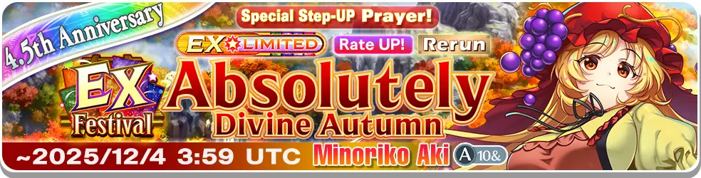 | 1 | Minoriko Aki (Faith EX) | 0.50000% | 10.00000% |